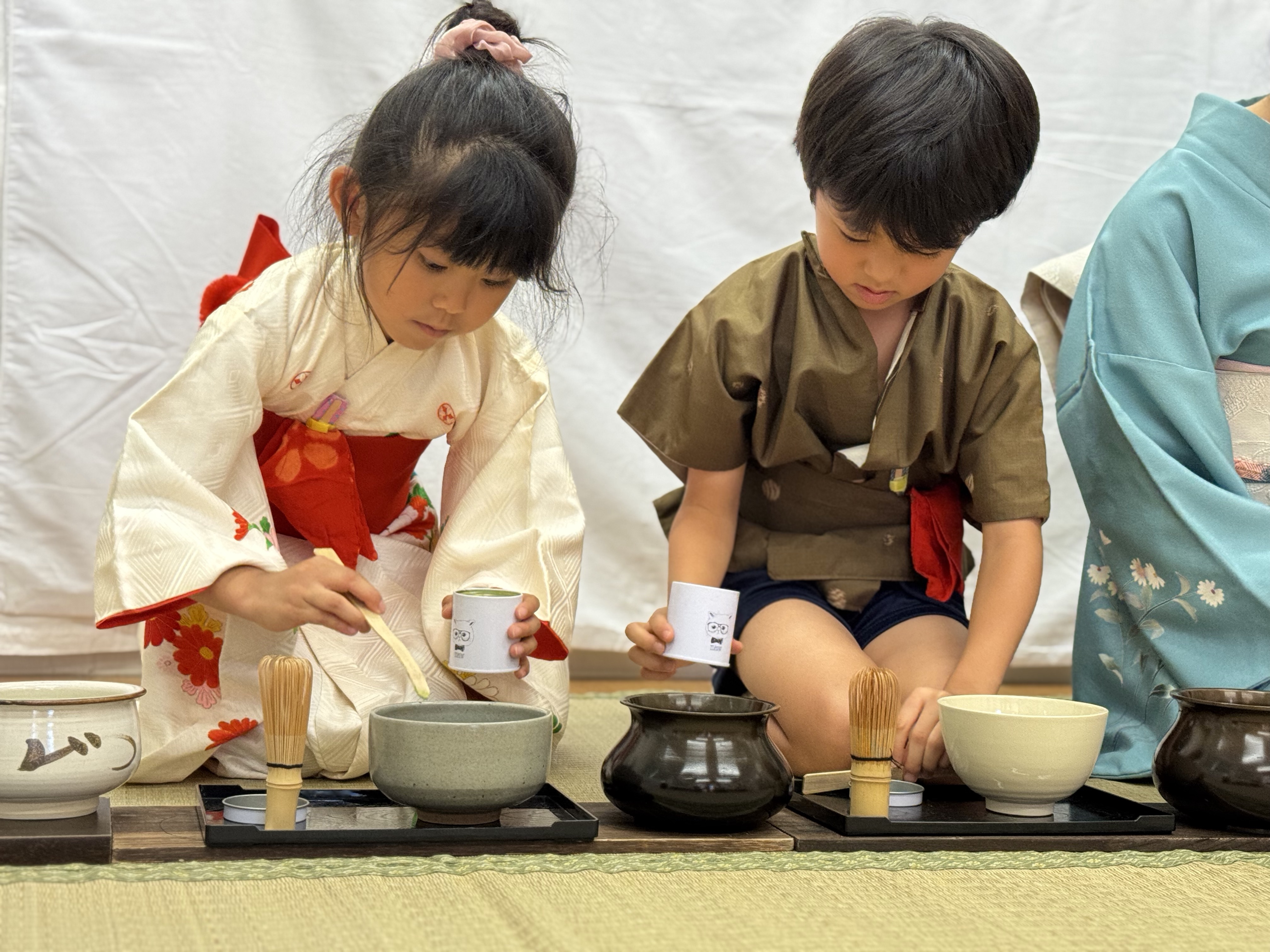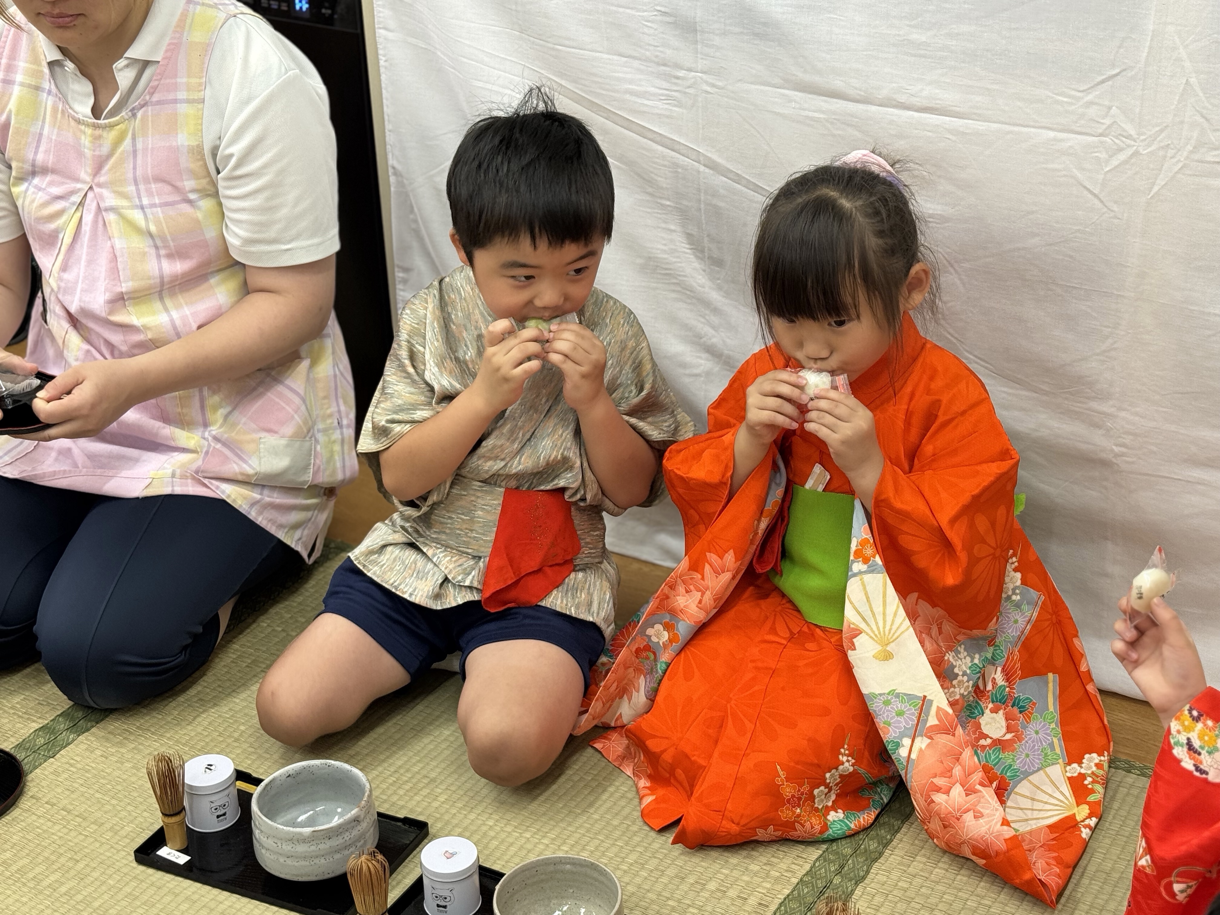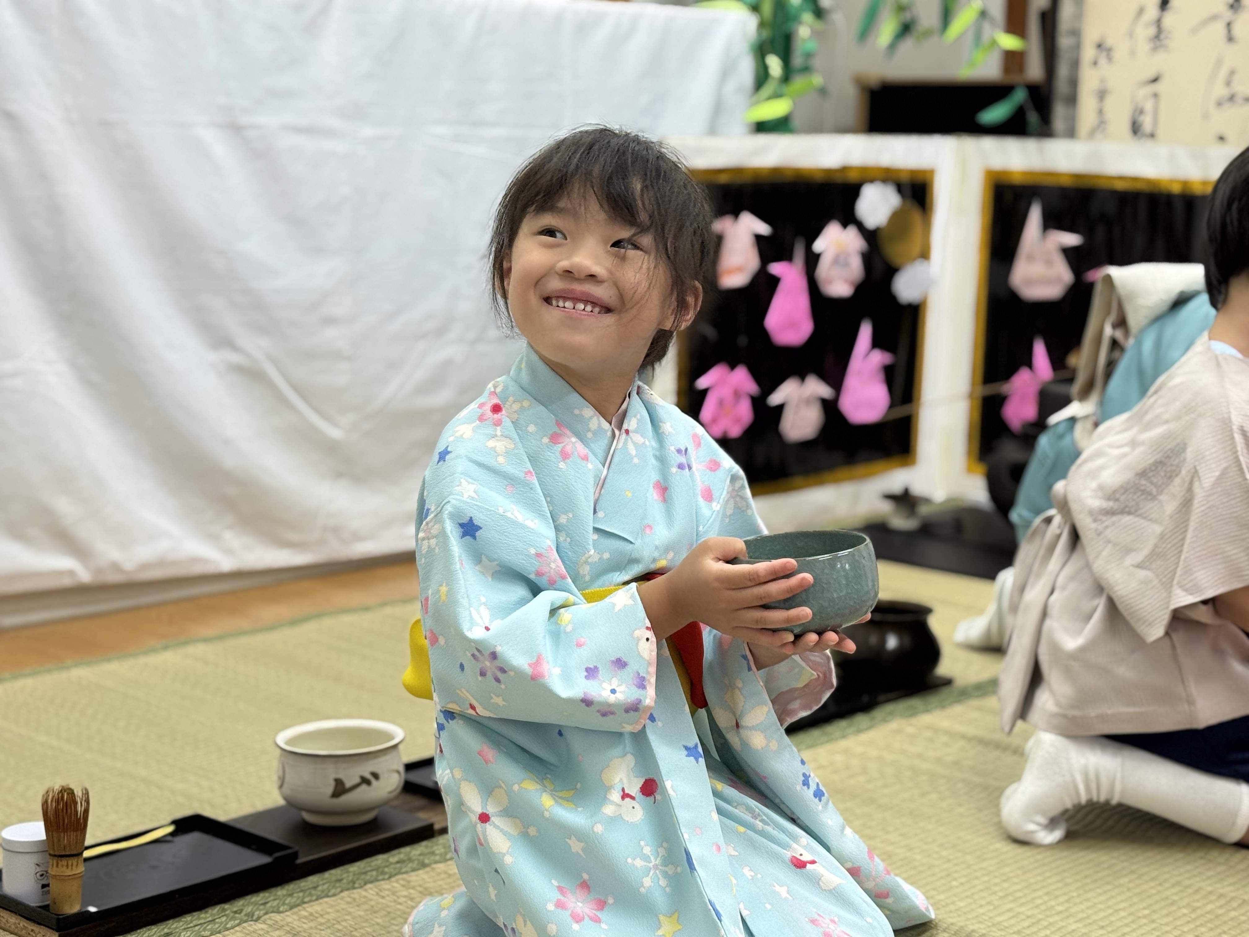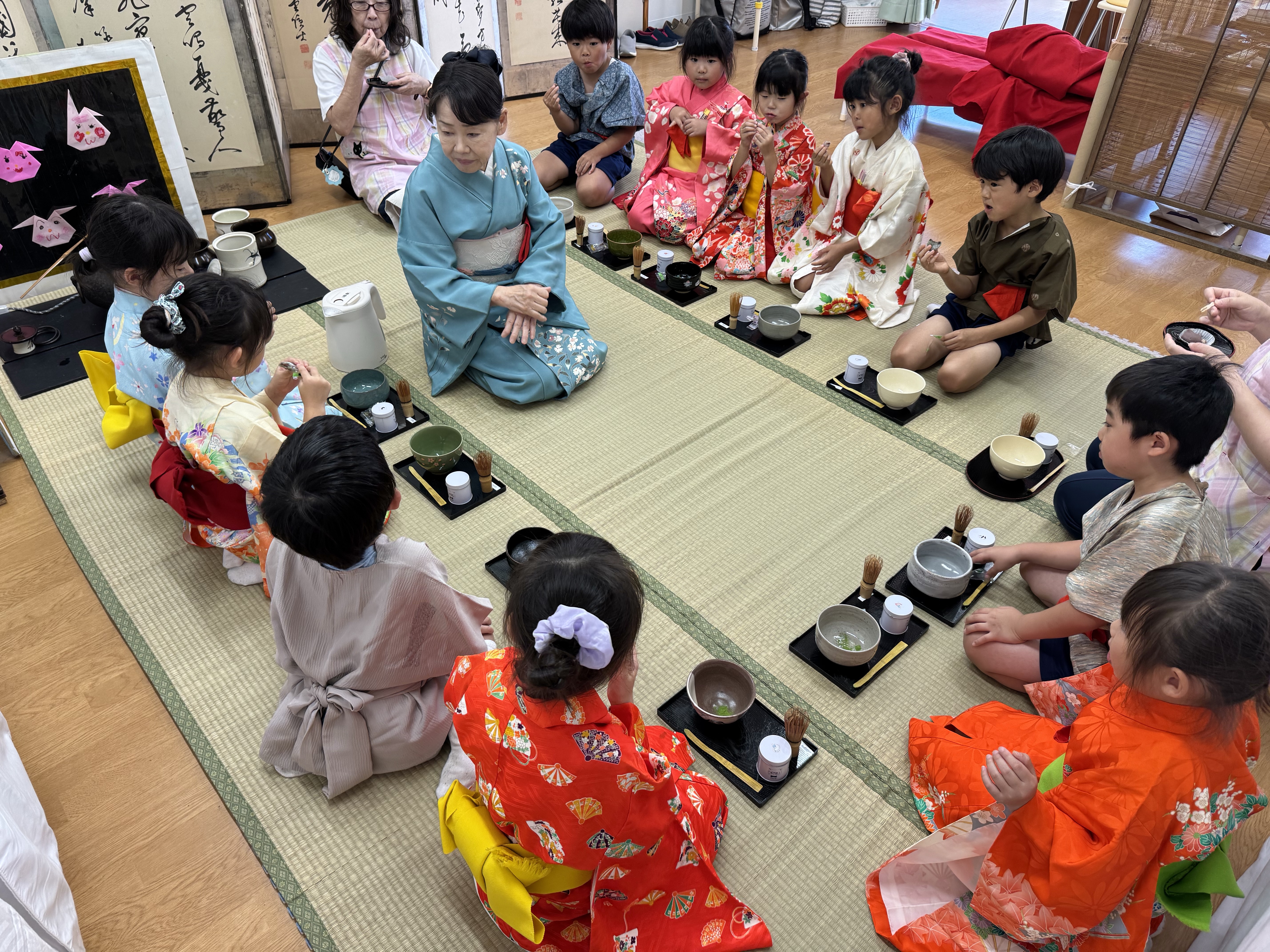 たいよう保育園2025.09.20 9/30(火)地域の方を招いてのお茶会を開催しました 毎年恒例のお茶会です。 春から取り組んでいるお茶の稽古。 地域の方々にお手前を振る舞いました。 最後はみんなも自分でたてたお茶とお菓子をいただきました。